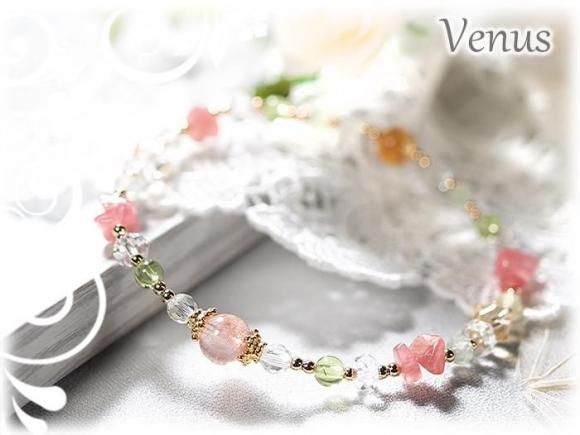 【超希少】ストロベリークォーツ&インカローズとペリドットetcのデザインブレスレット-Venus-