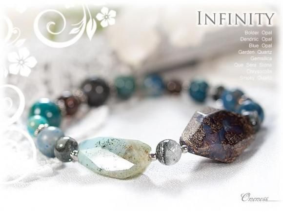 【オパール3種】ボルダーオパール&ジェムシリカ、ケセラストーンのデザインブレスレット-Infinity