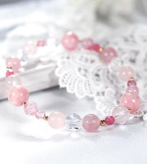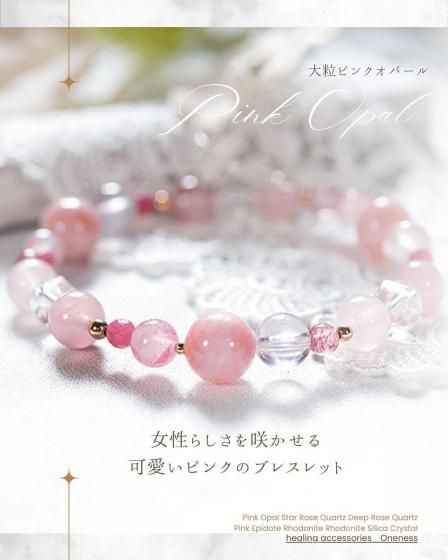 大粒の高品質ピンクオパール使用、女性らしさと愛を引き出すパワーブレスレット