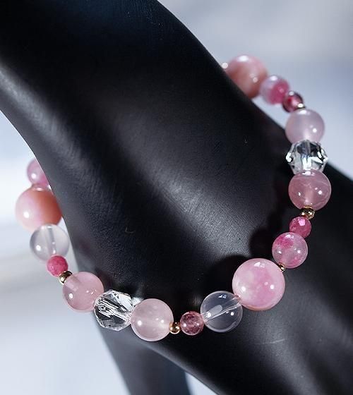 ピンクオパールとローズクオーツ3種、ロードナイトのパワーブレスレット -Energy