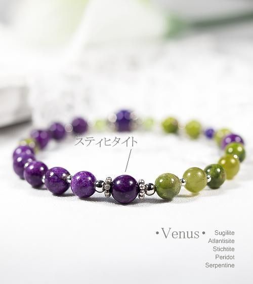 スギライトSAとアトランティサイト、スティヒタイトのデザインブレスレット -Venus
