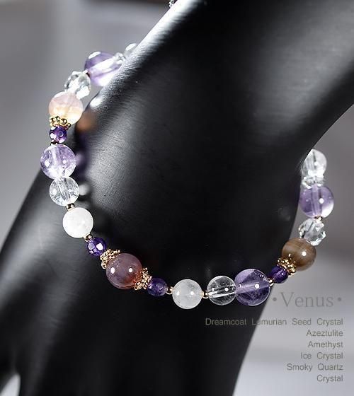 ドリームコートレムリアンシードクリスタル&アゼツライト、アメジストのデザインブレスレット -Venus
