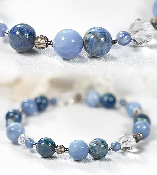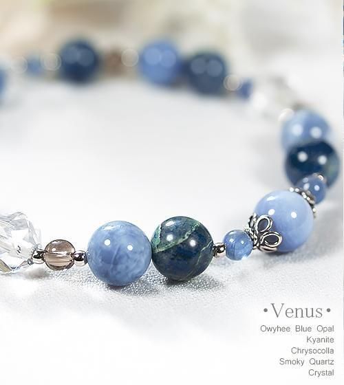 - オーウィーブルーオパールAAA8.5mm 南アフリカ産クリソコラ8mm カイヤナイトAAA4mm スモーキークォーツAAA4mm スターカット水晶AAA8mm 20面カット水晶AAA