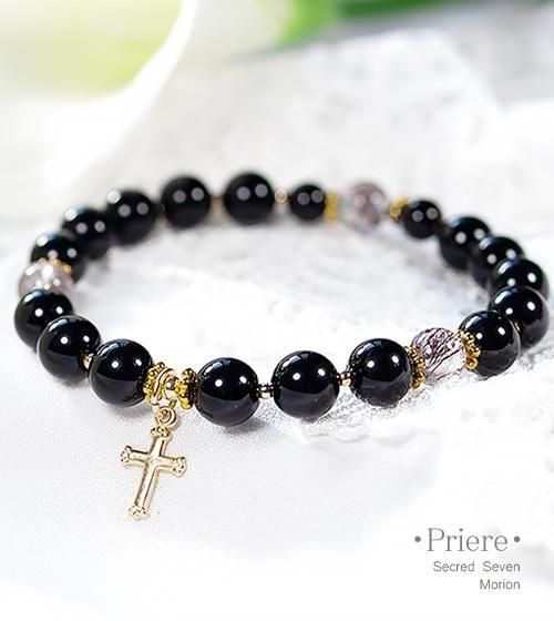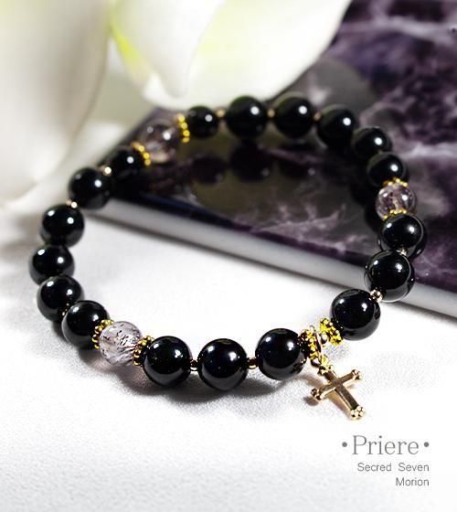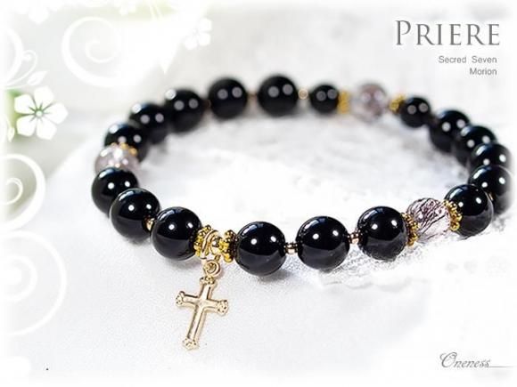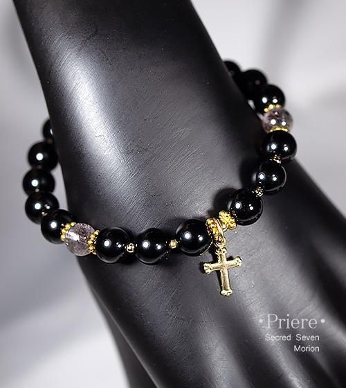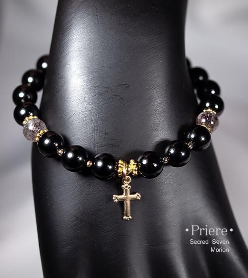 黒水晶(モリオン)とセイクリッドセブンのデザインブレスレット Priereシリーズ