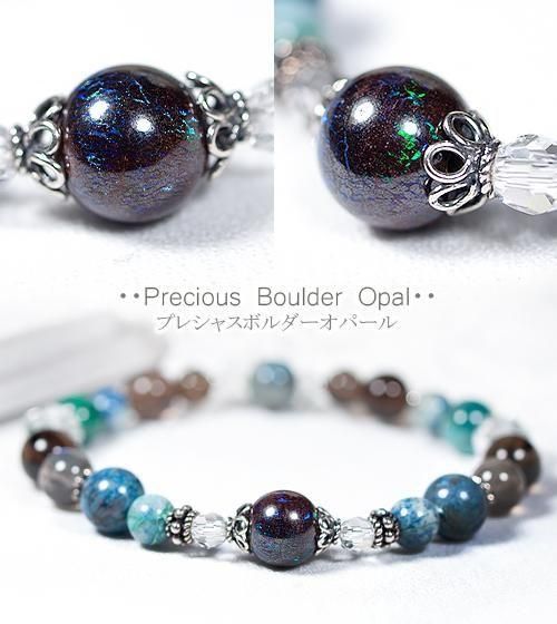 - オーストラリア産ボルダーオパールAAA9.3mm 南アフリカ産クリソコラ8mm クォンタム・クワトロ・シリカ8mm,6mm ラブラドライトAAA7mm スモーキークォーツAAA8mm,6mm スターカット水晶AAA8mm 32面カット水晶AAA4mm 20面カット水晶AAA